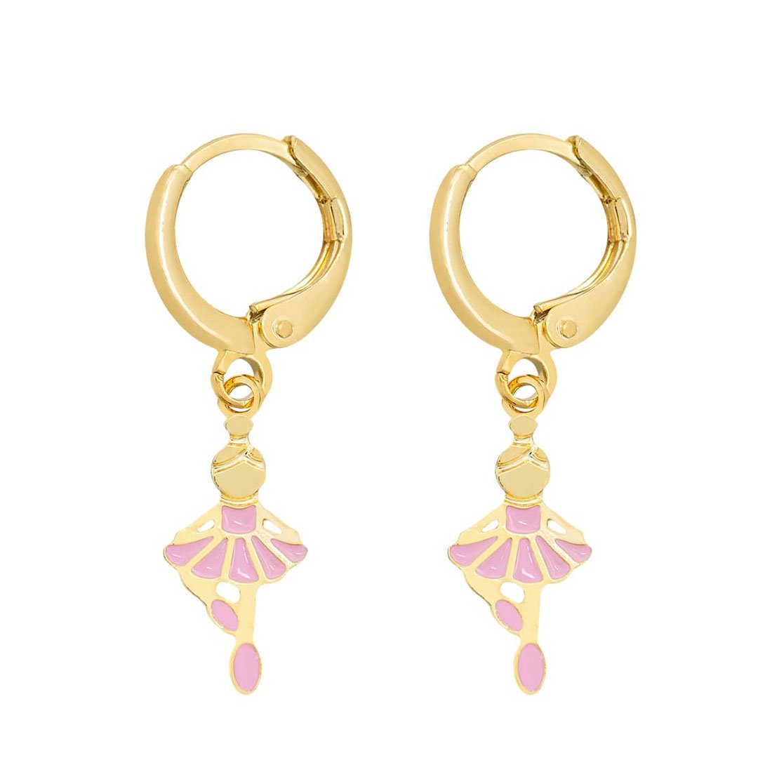 Brinco Argolinha Infantil de Bailarina resinada na cor rosa. Semijoia banhada à ouro 18k revestida com uma camada exclusiva de verniz antialérgico. O brinco de argolinha é uma ótima escolha, pois além de ser prático de colocar, destaca ainda mais o look da criançada.