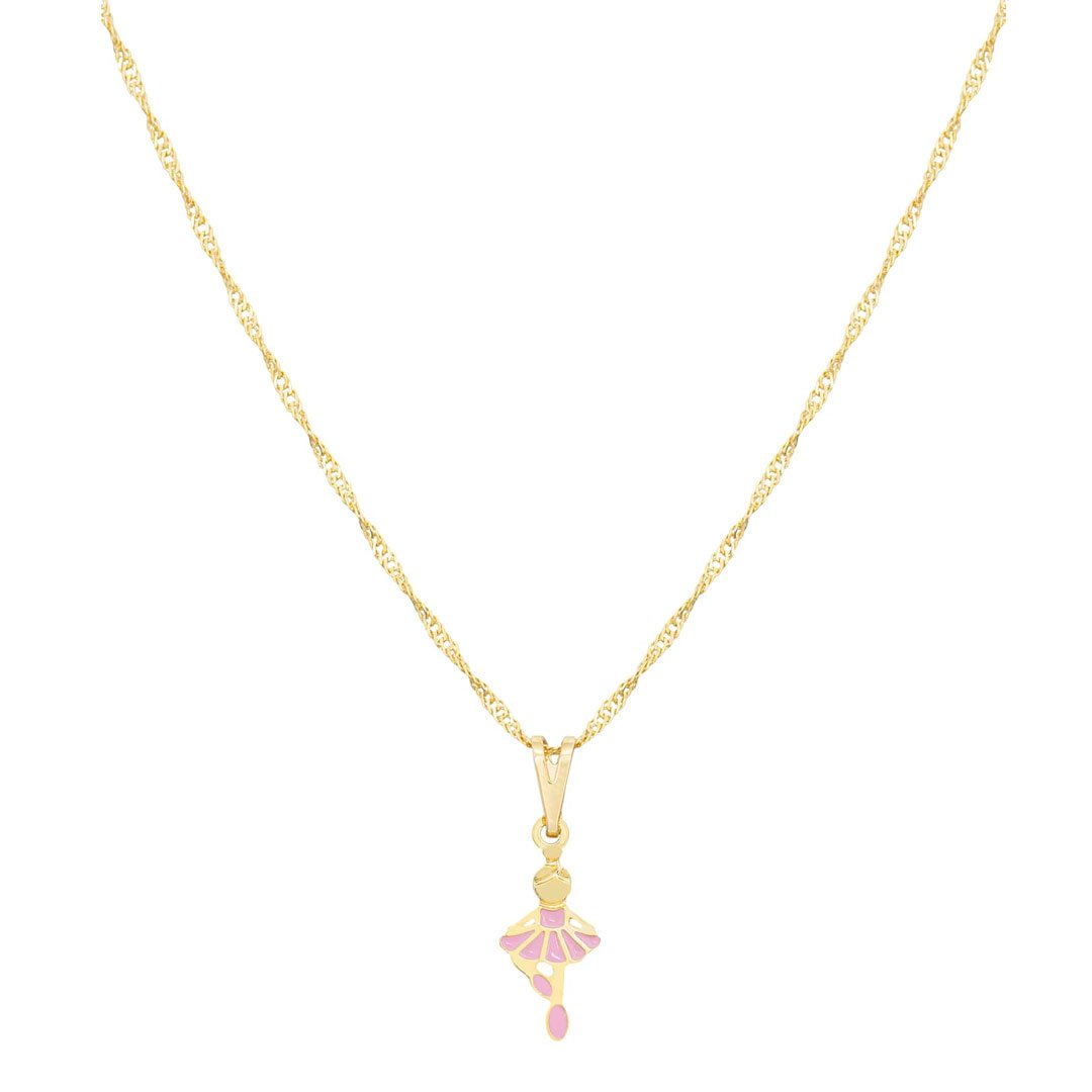 Colar infantil com pingente de Bailarina Resinada rosa. Semijoia banhada á ouro 18k revestida com uma camada exclusiva de verniz antialérgico.