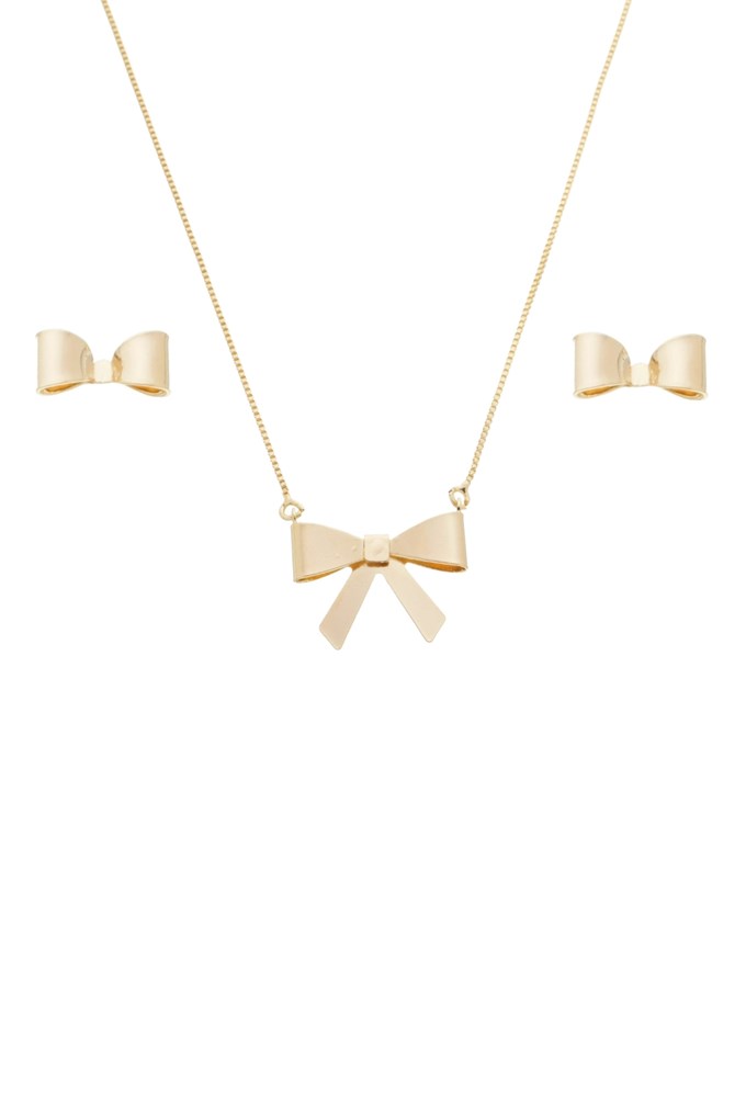 Conjunto de brinco e corrente de laço no banho de ouro.